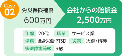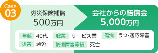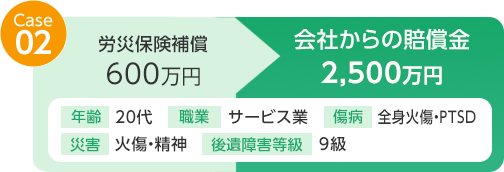 例えば、①慰謝料(入・通院慰謝料、後遺障害慰謝料、死亡慰謝料)の給付はない、②休業補償が事故前収入の100%分は給付されない、などの不十分な点があります。もし労災事故の発生について事業主に責任の一端があるならば、労災保険ではカバーされない慰謝料等の損害賠償を請求できるのです。
